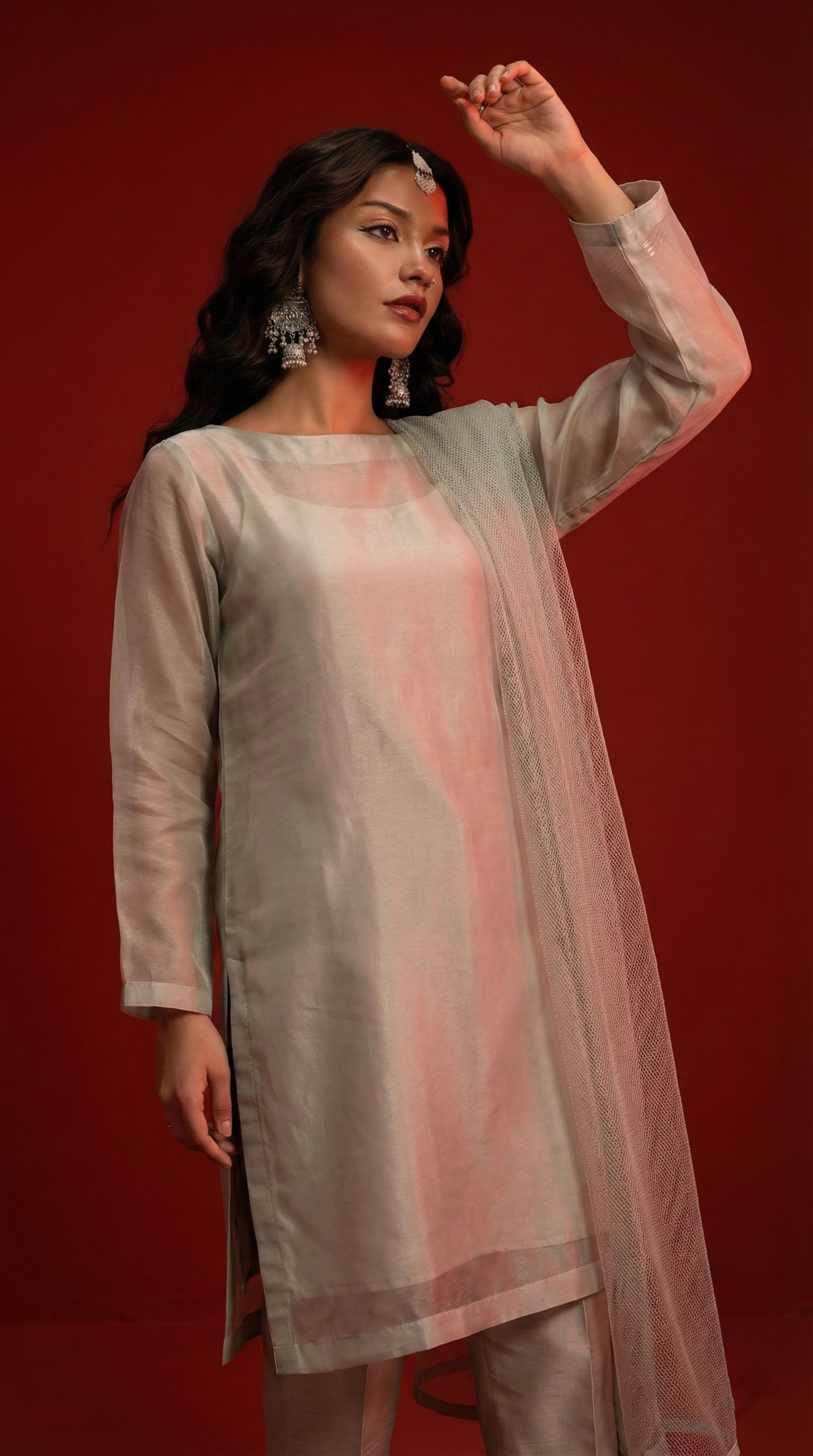 Zinc Grey Box Cut Organza Kurta – Luxury Minimal Core