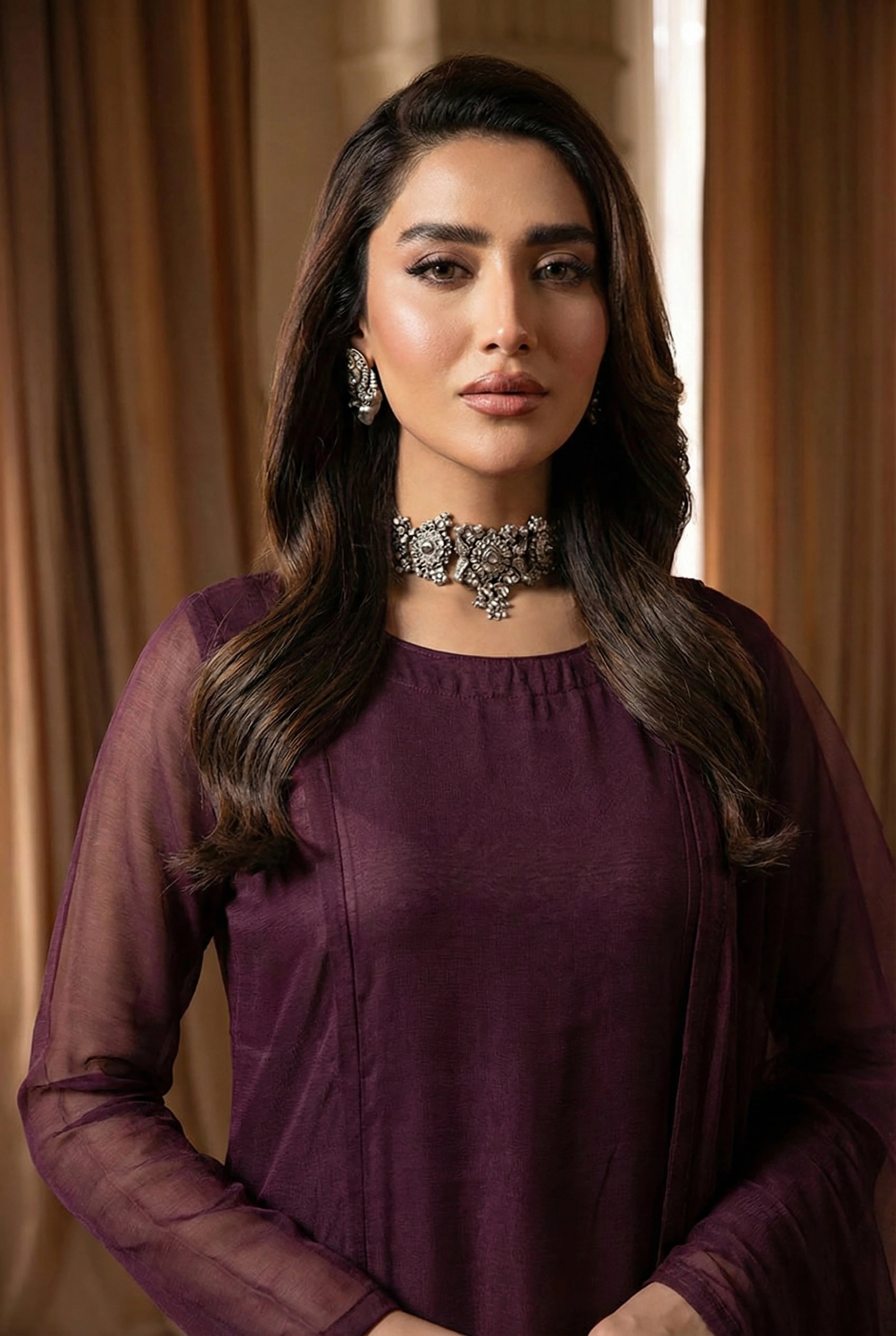 • Styling: Minimal jewellery, clean makeup to highlight fabric flow