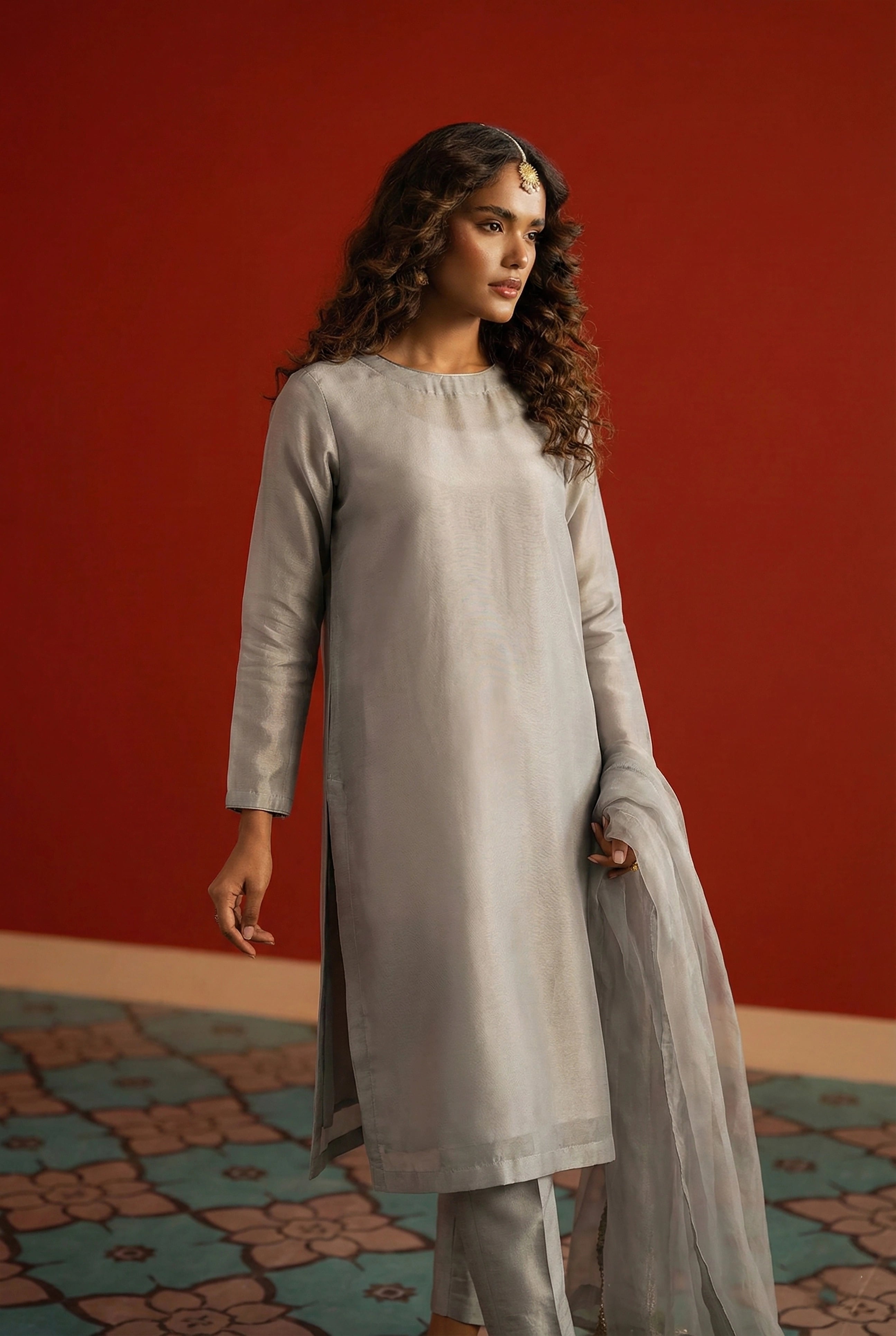 Zinc Grey Box Cut Organza Kurta – Luxury Minimal Core